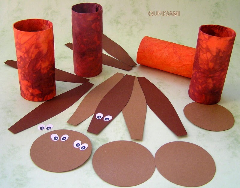 A farkincában van egy kis rafinéria, azaz gurigami. Egy hosszabb, keskeny sárga csík végét úgy hajtottuk vissza, hogy egy kis talpacskát kapjunk. Erre ragasztottuk a bojtot, ami olyan, mint a pipi csőre, csak keskenyebb és barna.